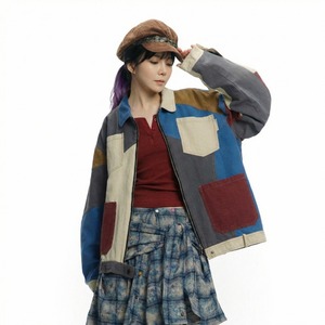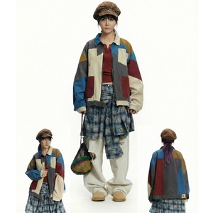 パッチワークオーバーサイズシャツジャケット 【001713】