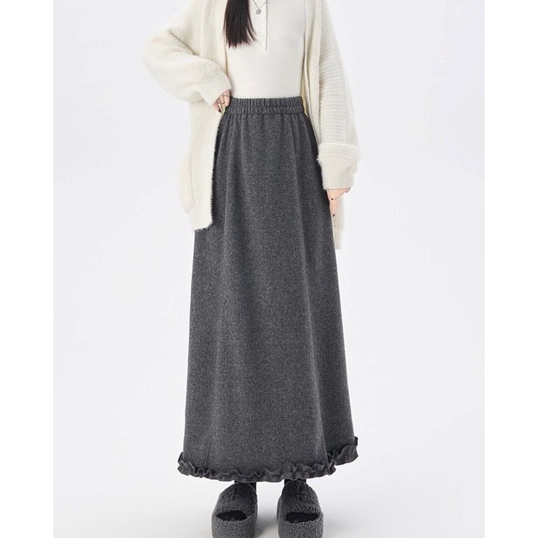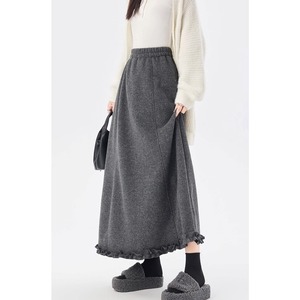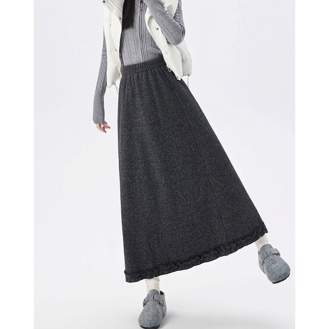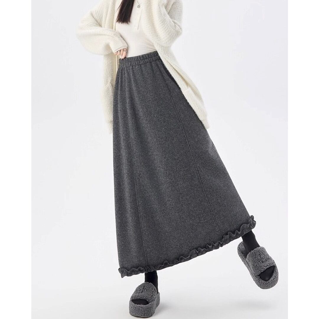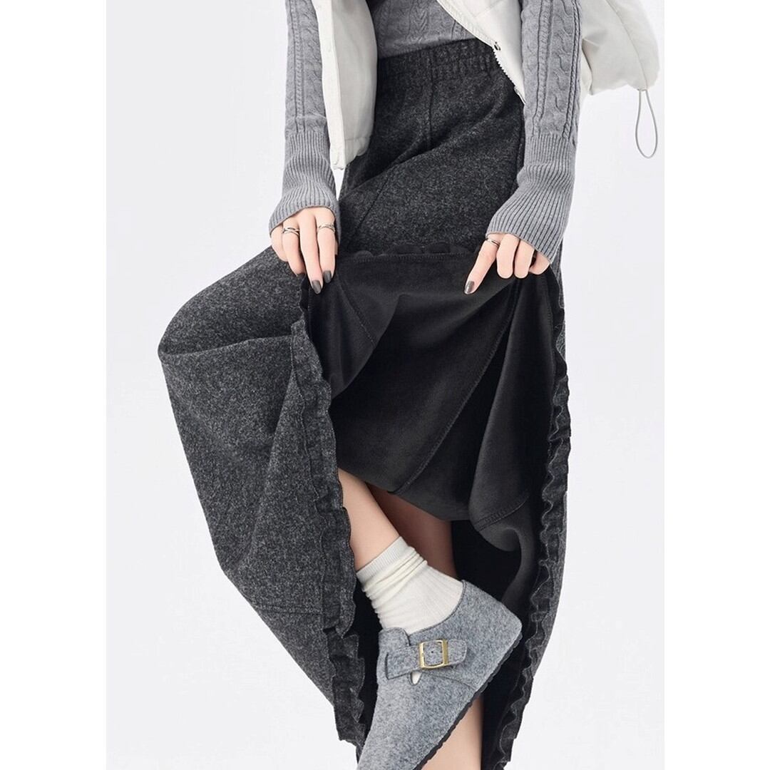 フリル ミディ丈 Aライン スカート 2色【001817】