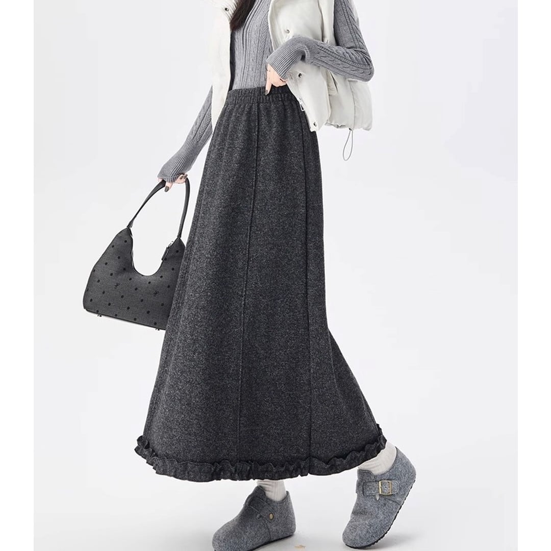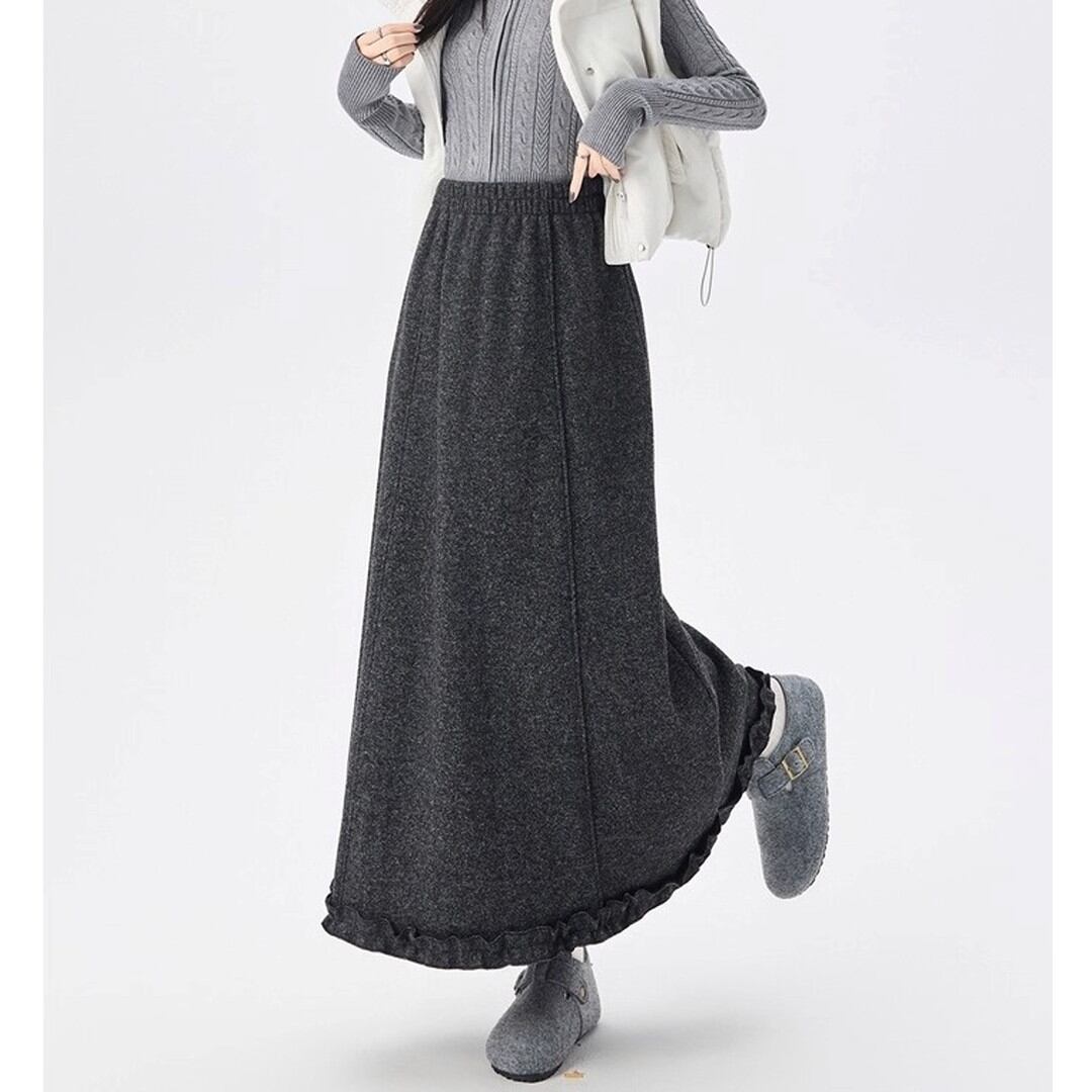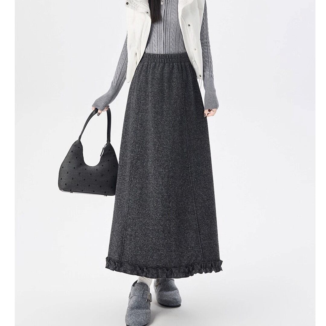 フリル ミディ丈 Aライン スカート 2色【001817】