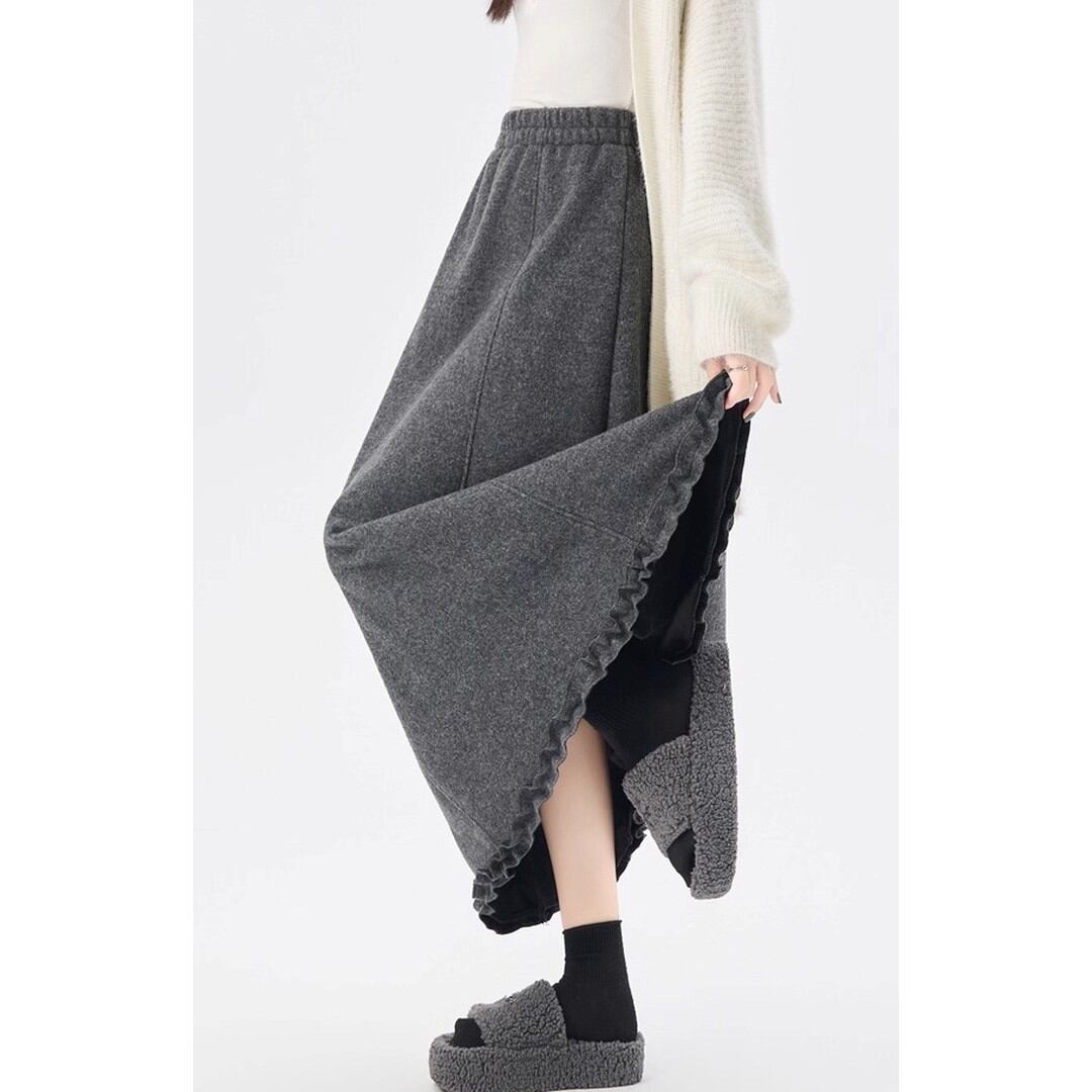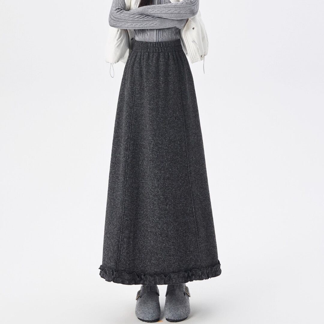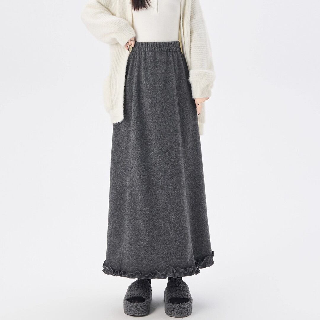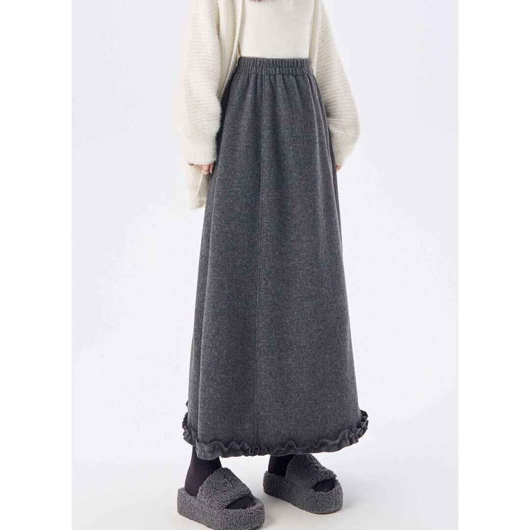フリル ミディ丈 Aライン スカート 2色【001817】