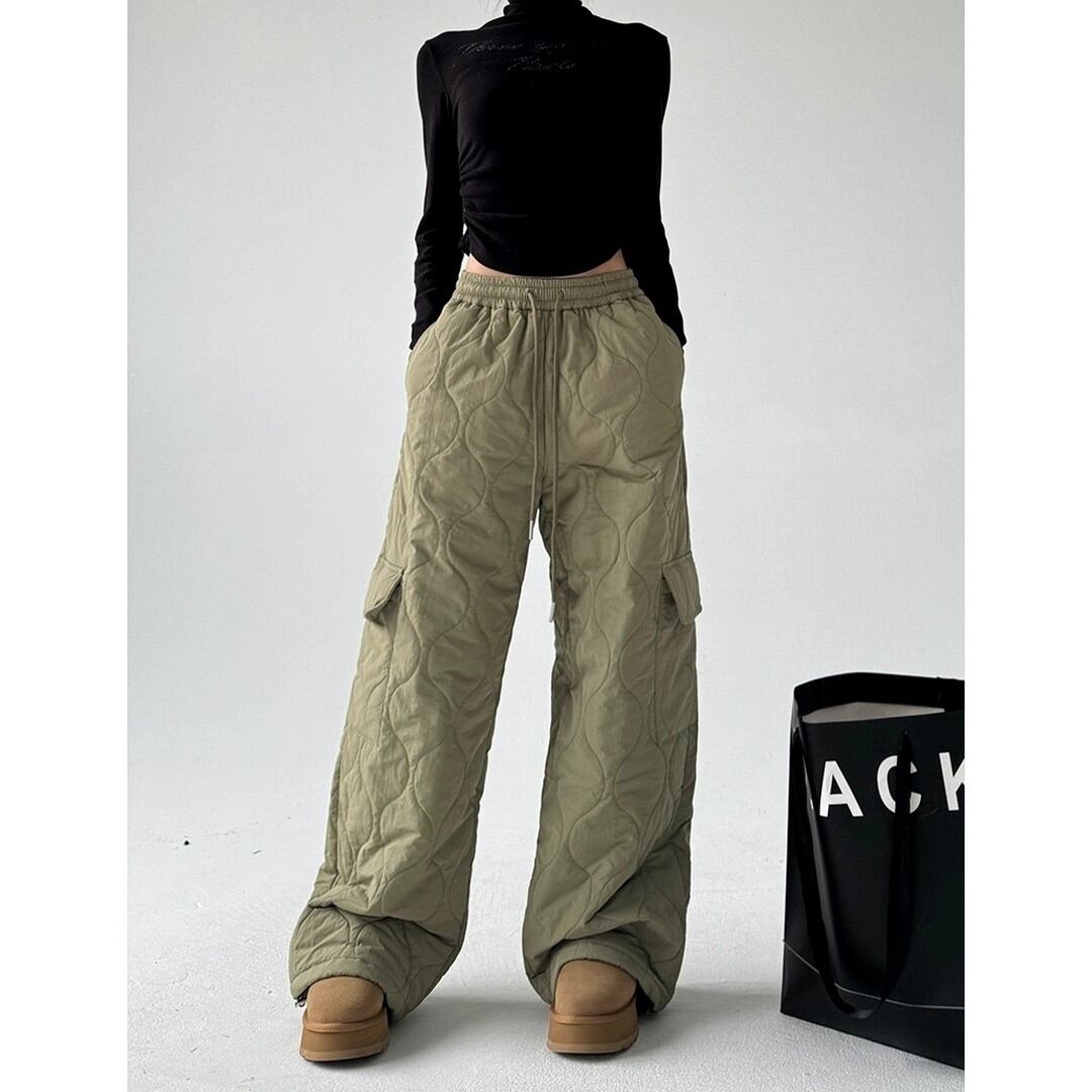 キルティングワイドロングパンツ 3色【001825】