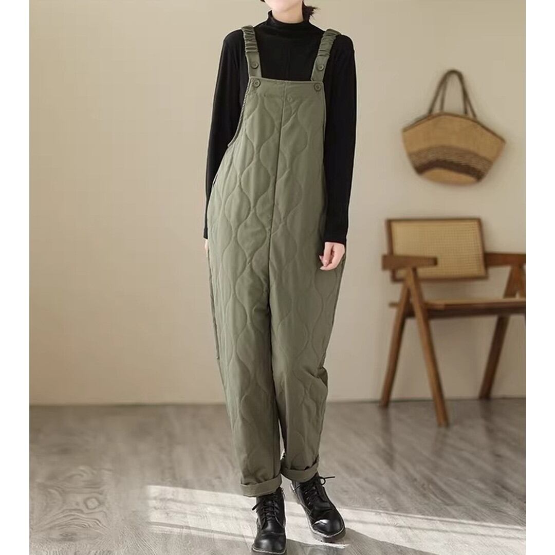 キルティングサスペンダーテーパードオーバーオール 2色【001826】