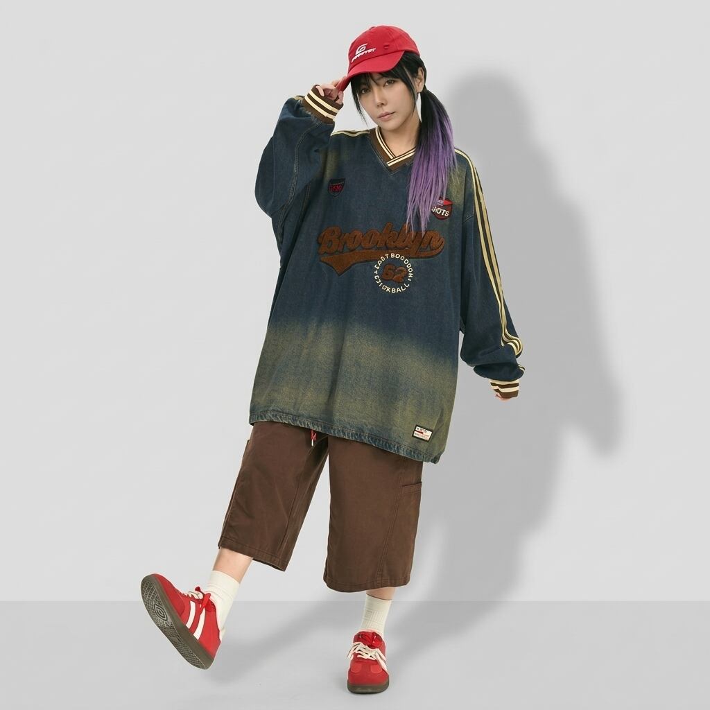 ゆったりとしたシルエットで、カジュアルながらもこなれた印象を与えます。