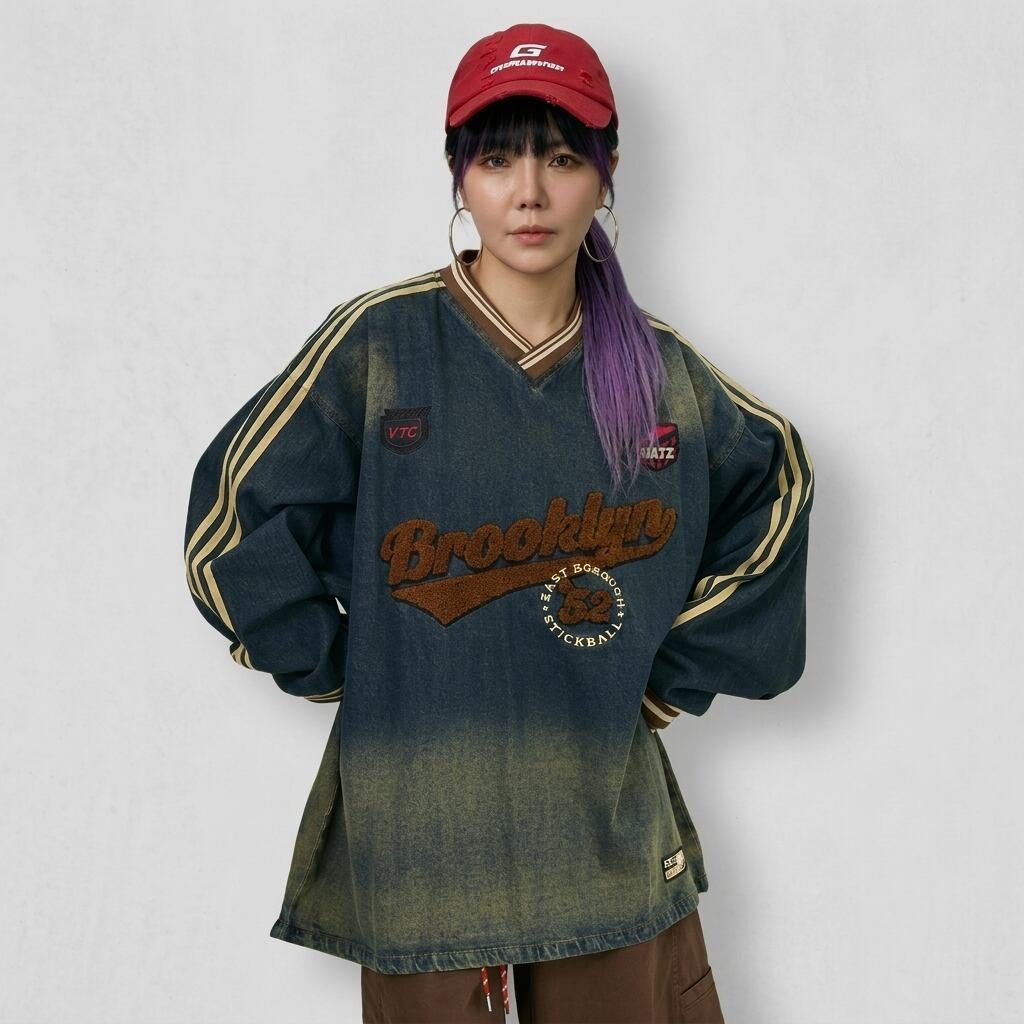 ライン入りVネックオーバーサイズカットソー【001829】