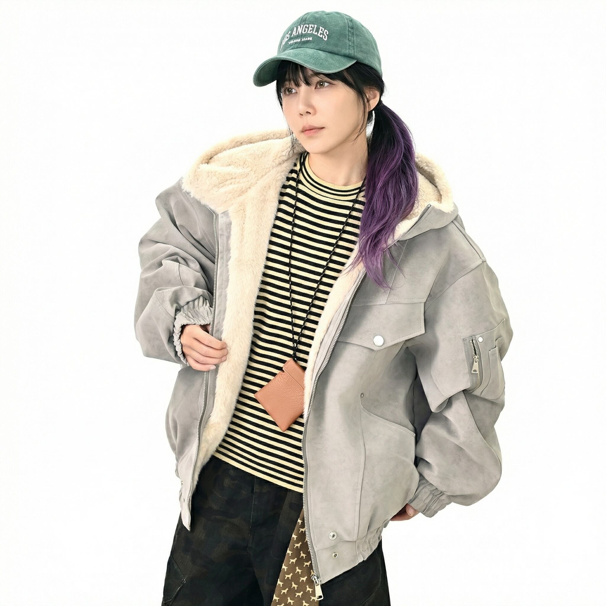 ゆったりとしたオーバーサイズシルエットが魅力のジップアップジャケット。