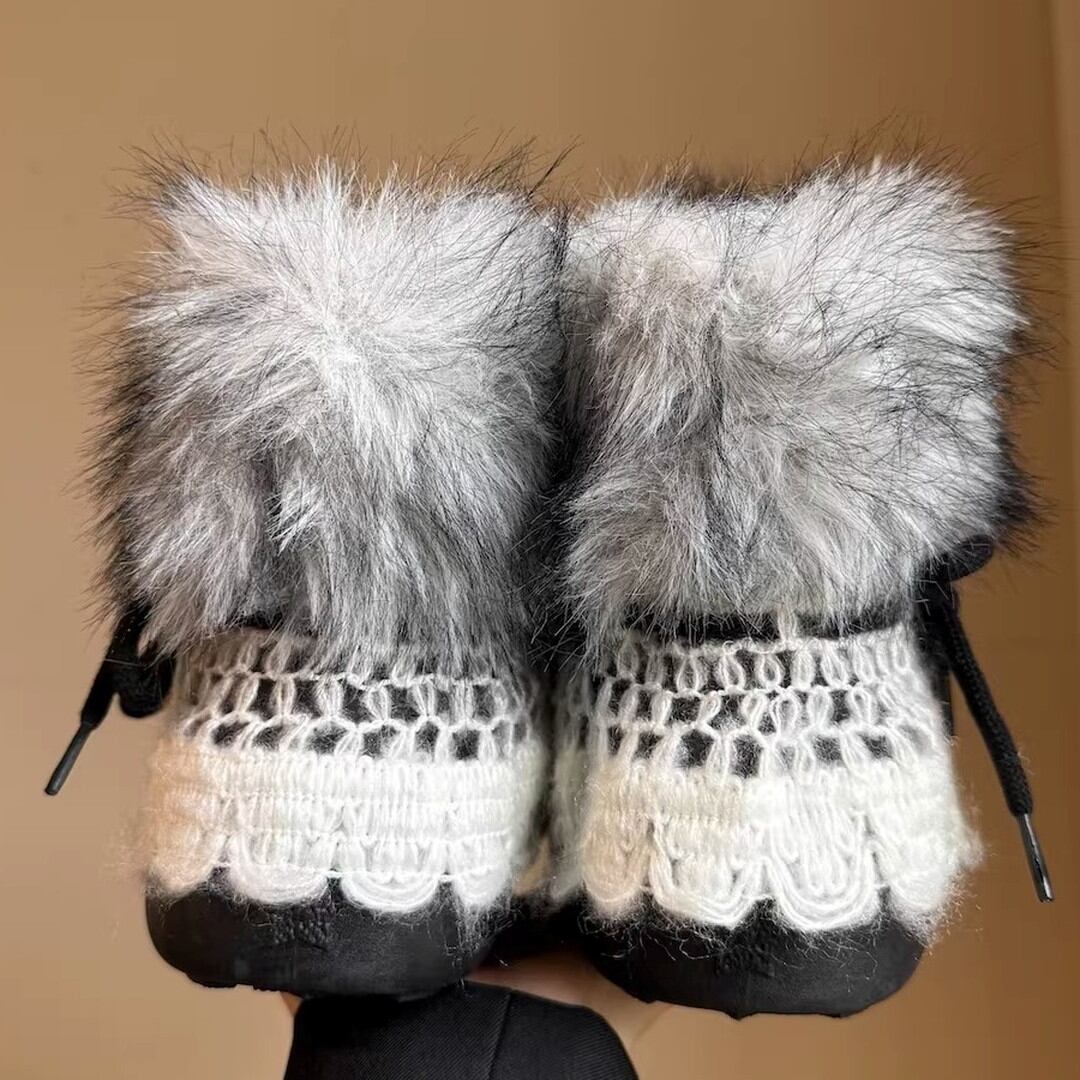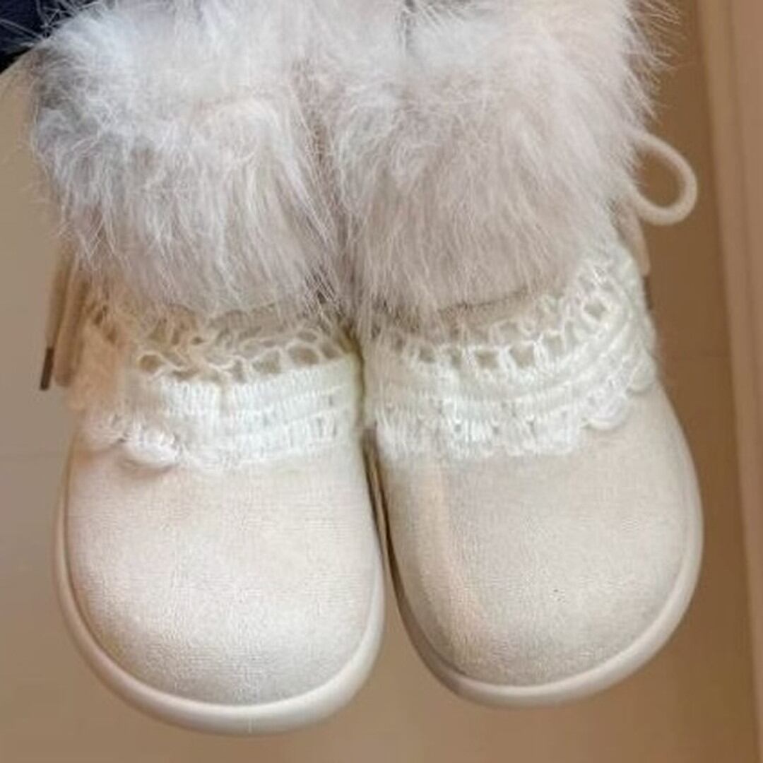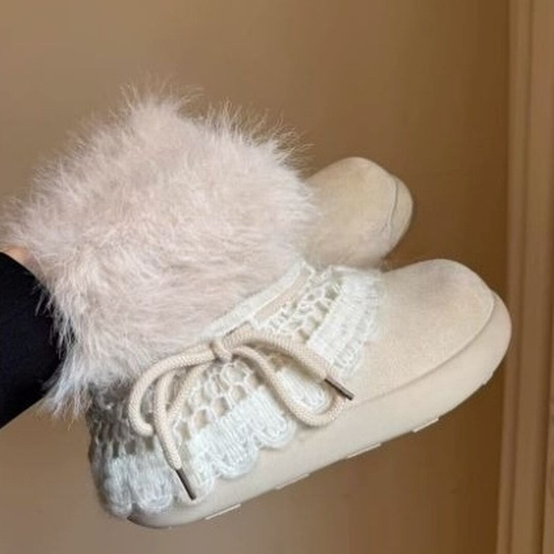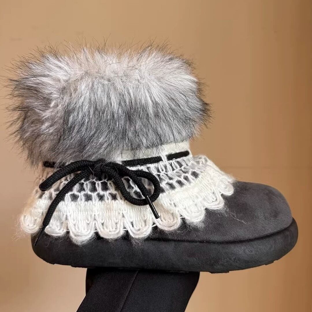レースアップデザインが特徴的なショート丈のスノーブーツ。