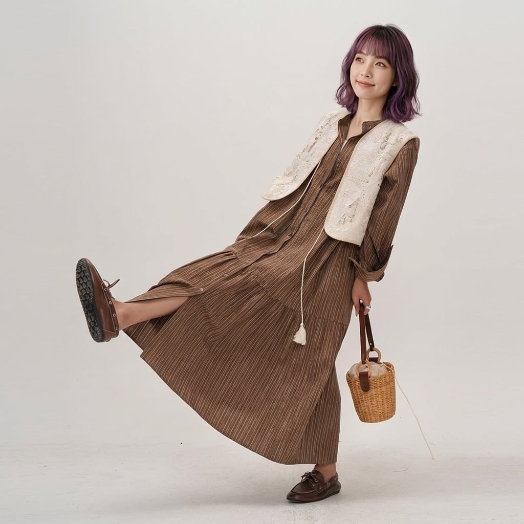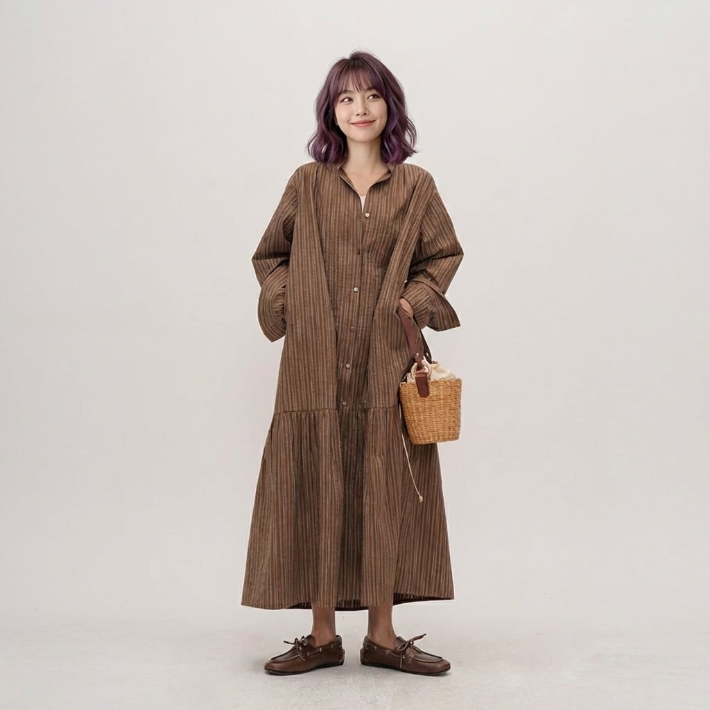上品なストライプ柄と、ティアードデザインが魅力のマキシ丈ワンピース。