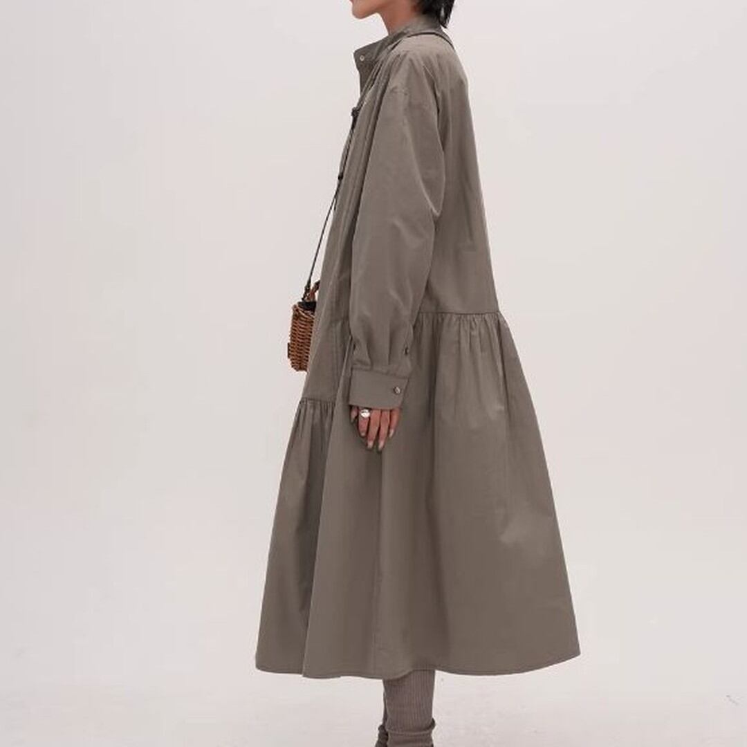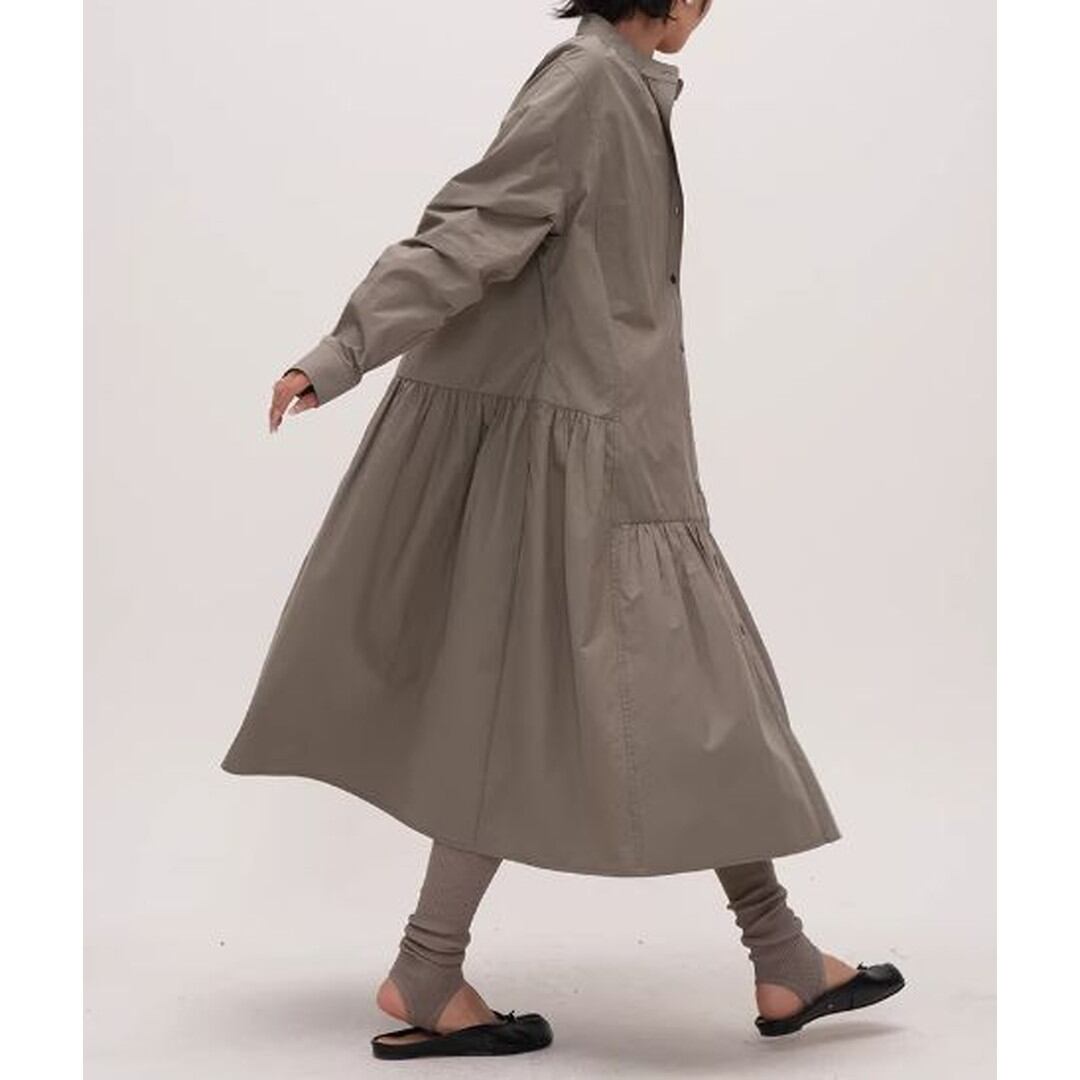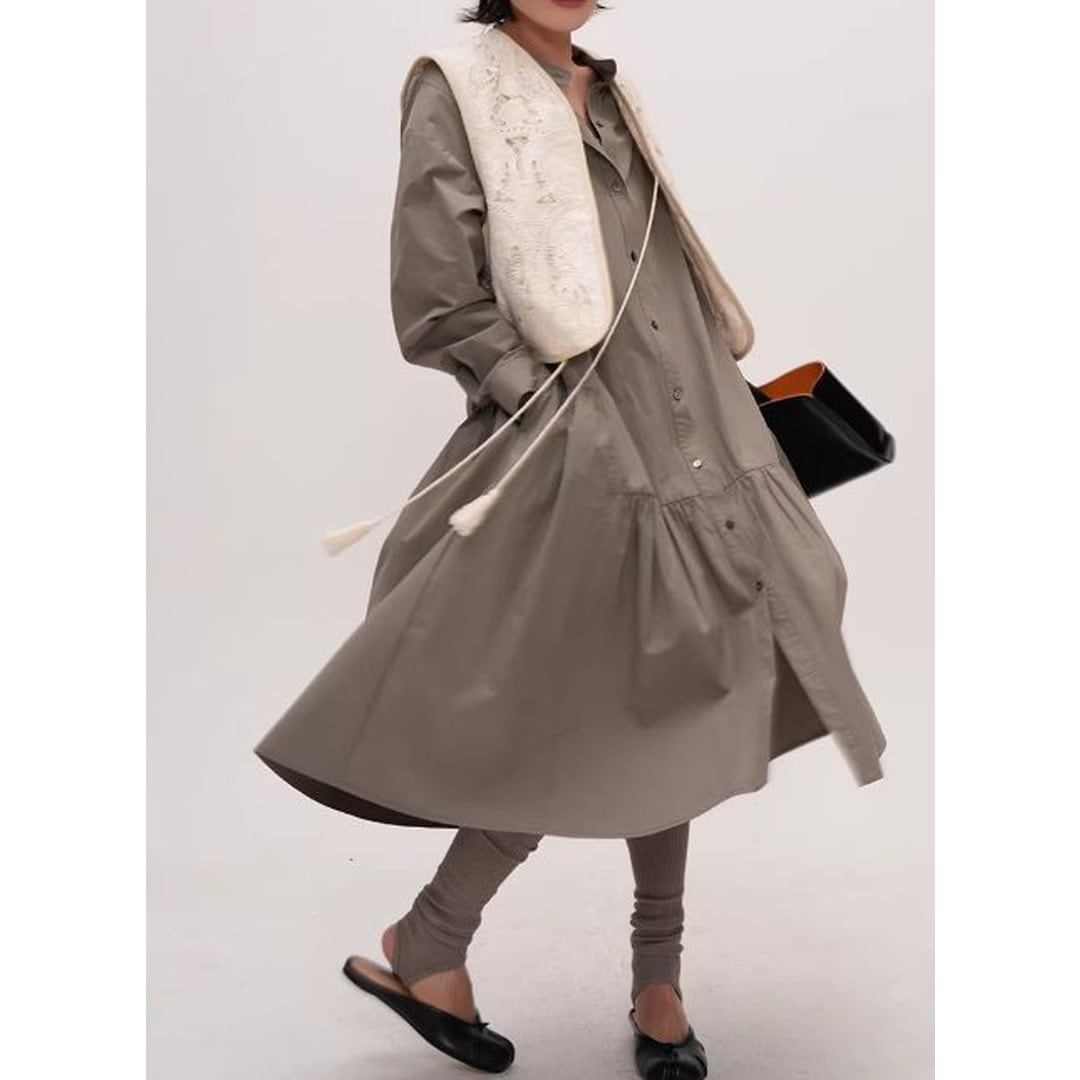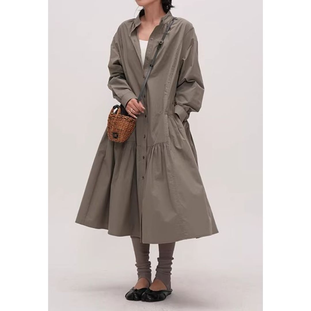 シンプルなデザインの中に、ティアード切り替えがさりげないアクセントを加えるシャツワンピース。
