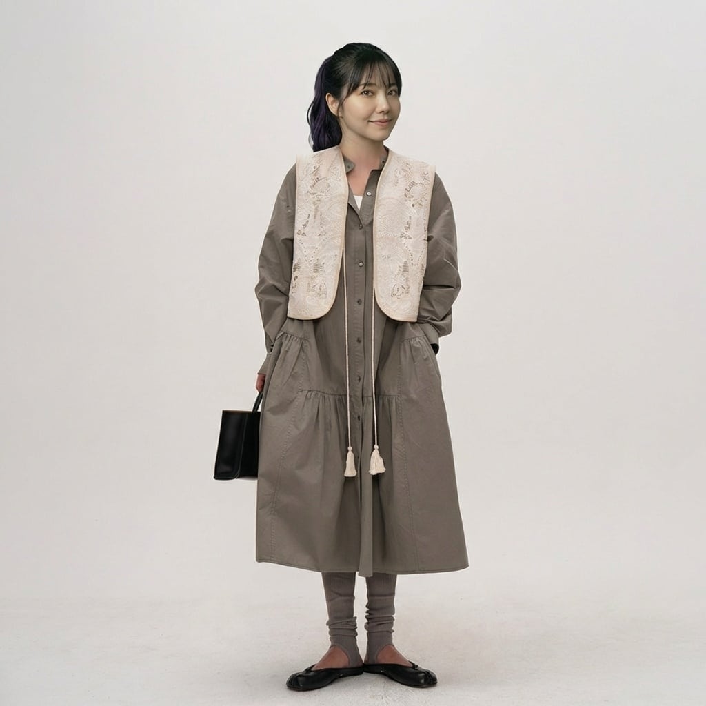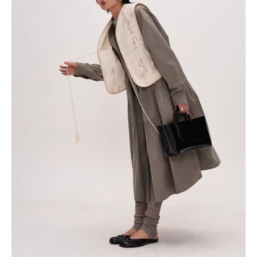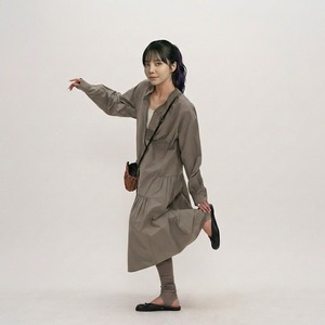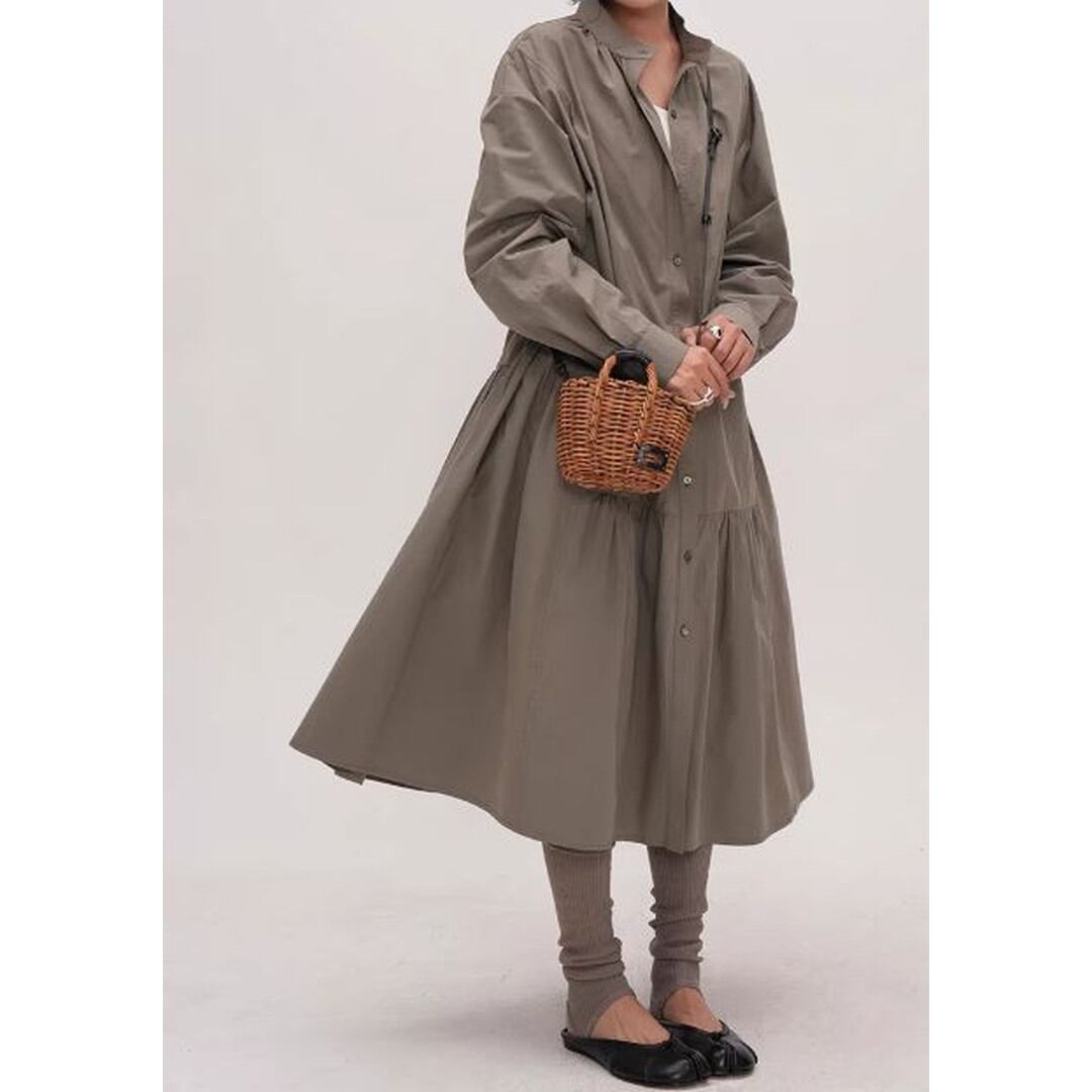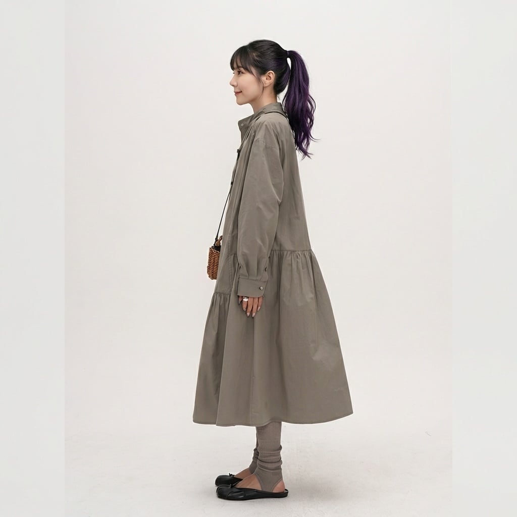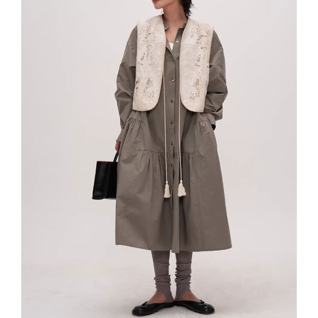 シンプルなデザインの中に、ティアード切り替えがさりげないアクセントを加えるシャツワンピース。