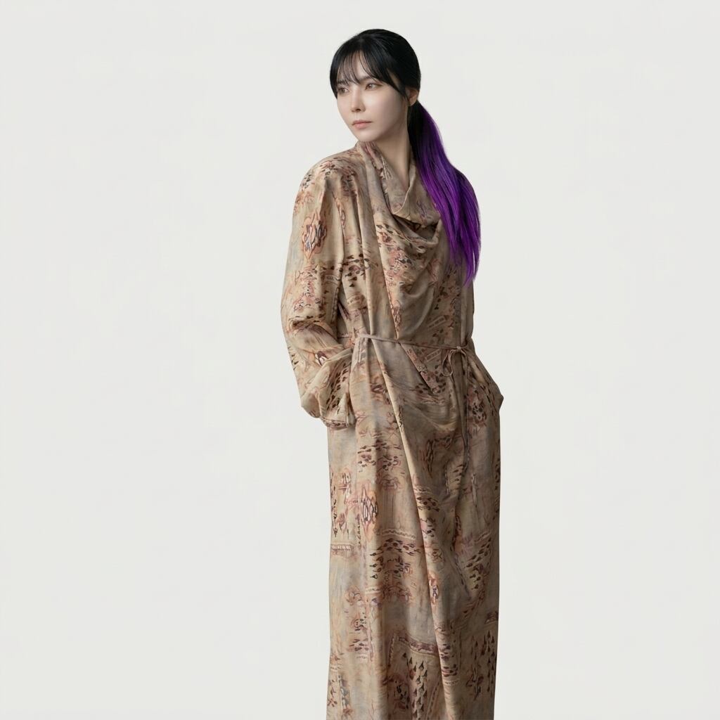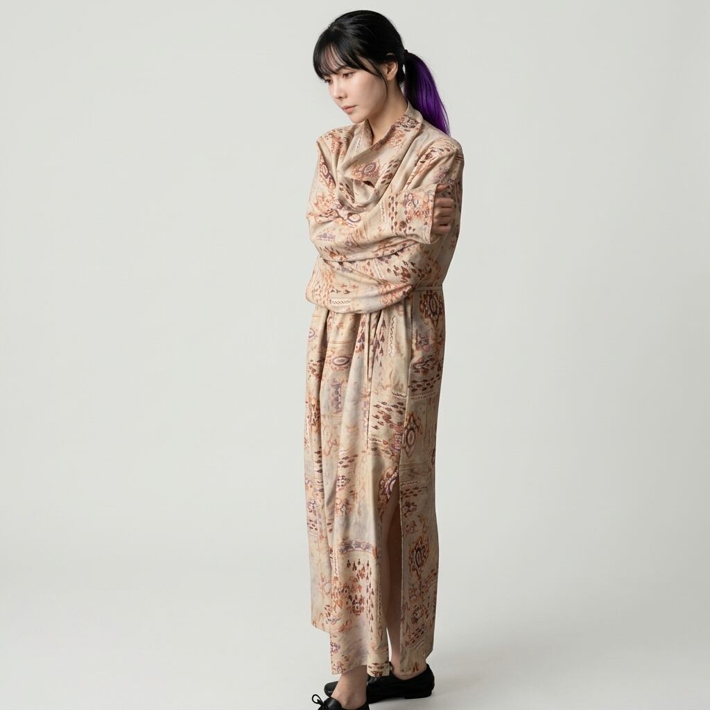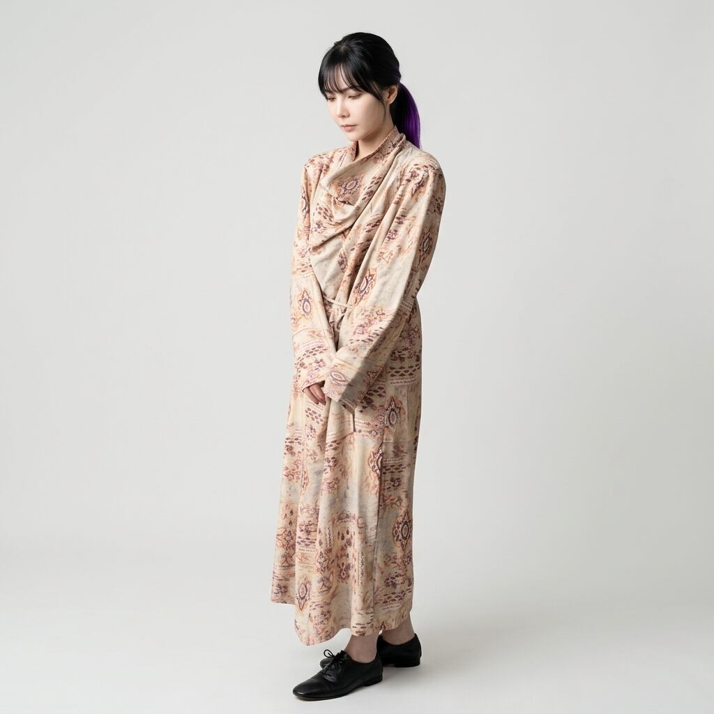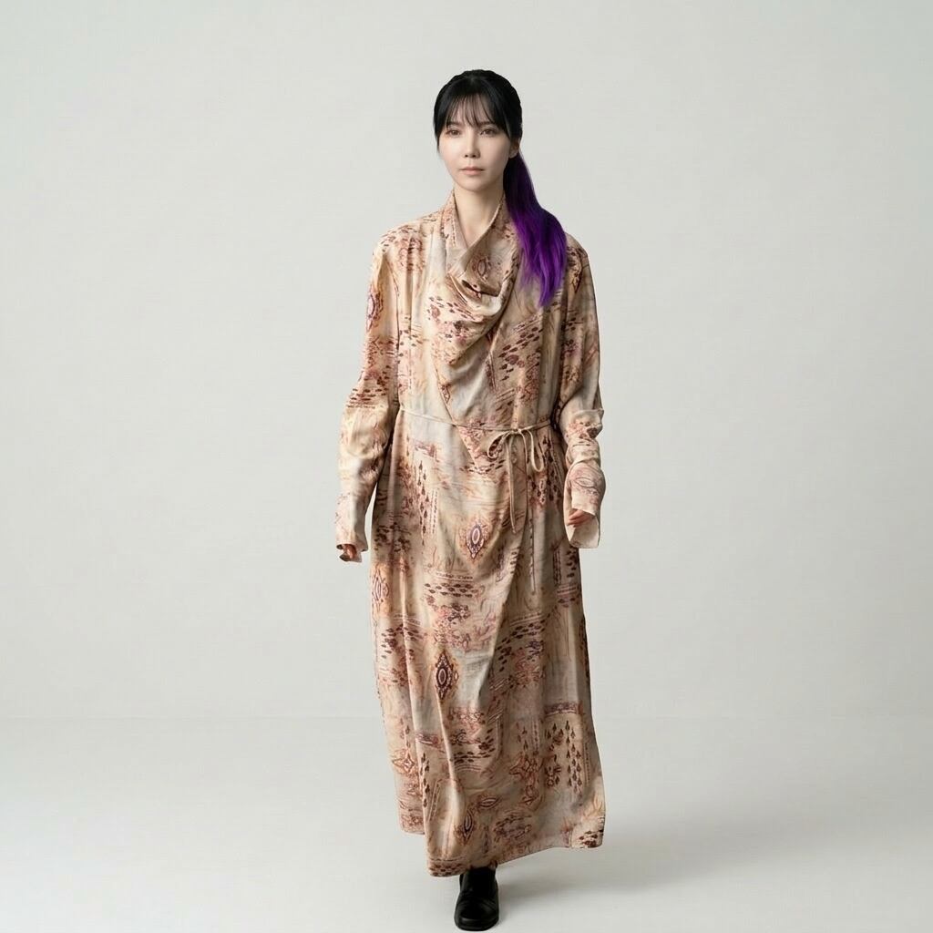 ドレープネック長袖マキシ丈ワンピース 【001874】