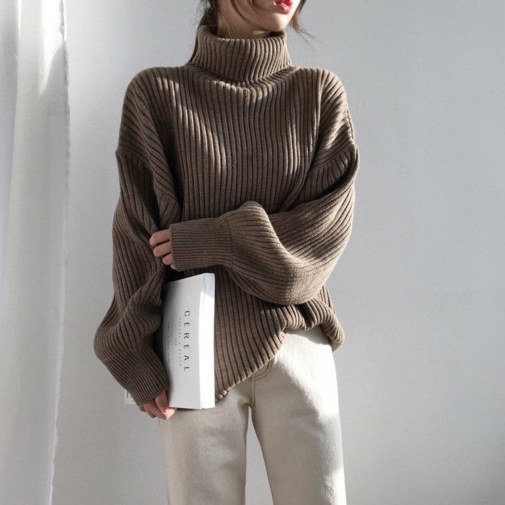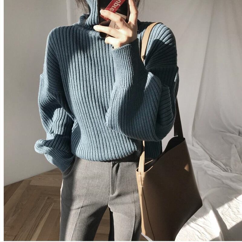 ハイカラーランタンスリーブセーター 3色 【200031】