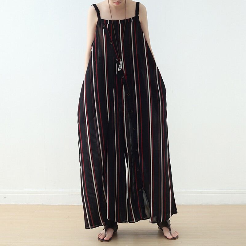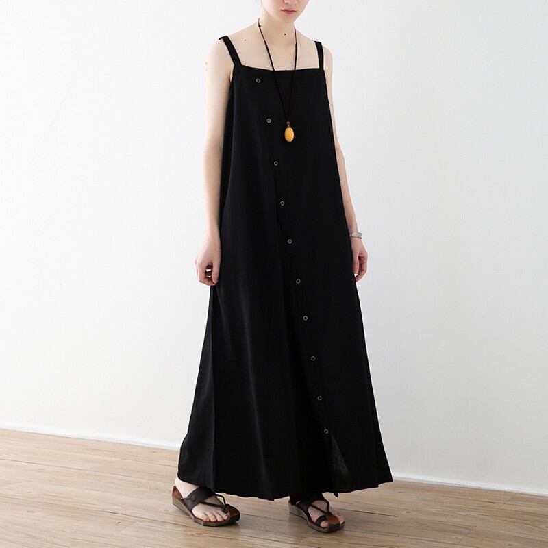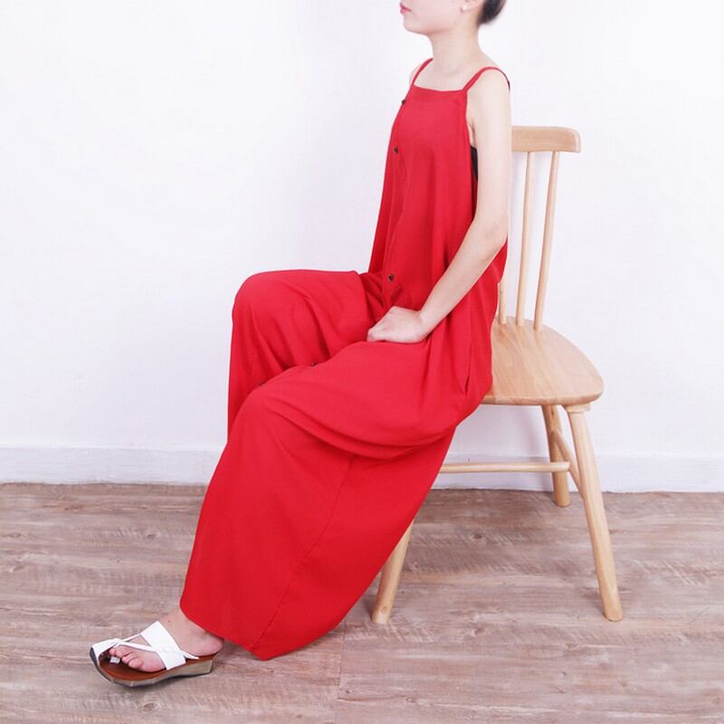 フロントボタンが斜めになっており、裾部分が一部スリットになっている、オールインワンのワイドレッグパンツです。