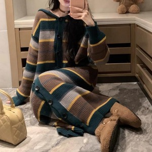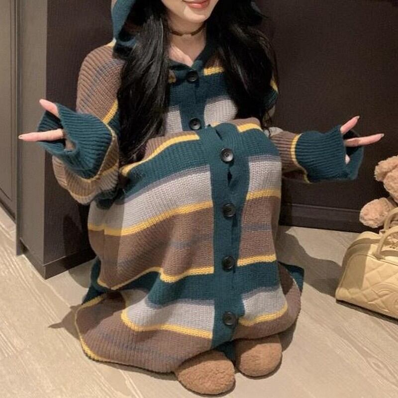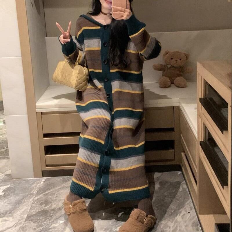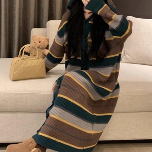 自宅でのリラックスタイムや外出先でのカジュアルなスタイリングにぴったりの、フード付きセーターロングワンピースです。
