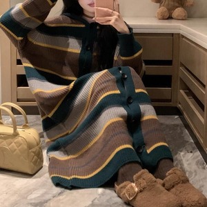シングルブレストのデザインとボーダー柄がおしゃれなアクセントになっています。